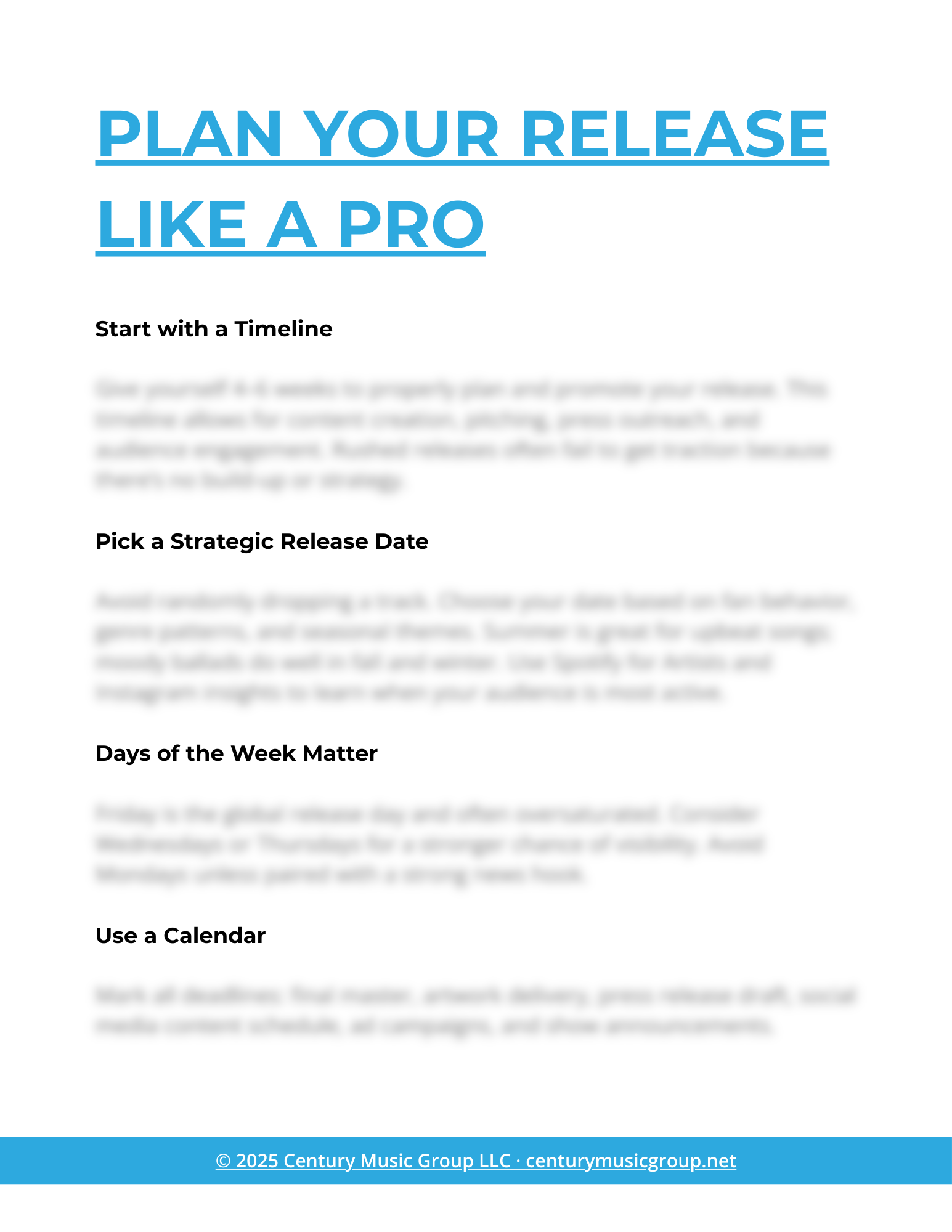 Store The Ultimate Music Release Strategy Guide for 2025 (Includes Lifetime Updates) Sale Price: $19.99 Original Price: $37.00 Sale 👉 Get Instant Access Today Added!